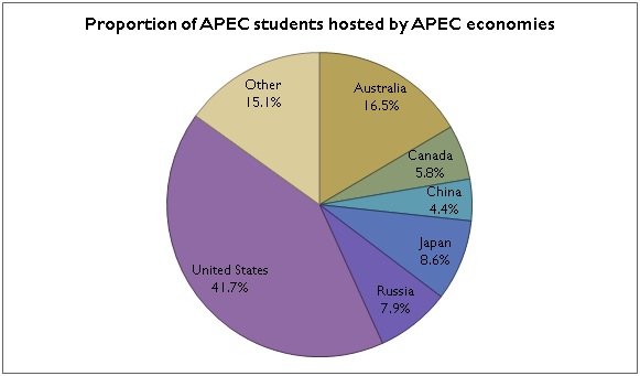 Although the absolute numbers of degree-mobile students from APEC communities is large, their number as a proportion of the tertiary population is relatively small, indicating significant potential for growth in future years.